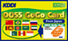 ●KDDI 0055 GoGo カードID | 日本発信国際通話専用カード(日本国内通話・海外から日本への通話はできません。)◆ブラジル ◆スリランカ ◆ロシア ◆イラン ◆インドネシア ◆バングラディッシュ ◆パキスタン ◆アラブ首長国連邦(UAE) ◆サウジアラビア ◆ペルー ◆中国 ◆香港 ◆台湾が特におトク! ※上記以外の国宛通話はスーパーワールドカードをご購入ください。 |